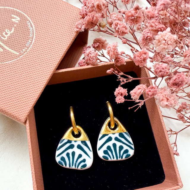 Boucles d’oreilles porcelaine et or