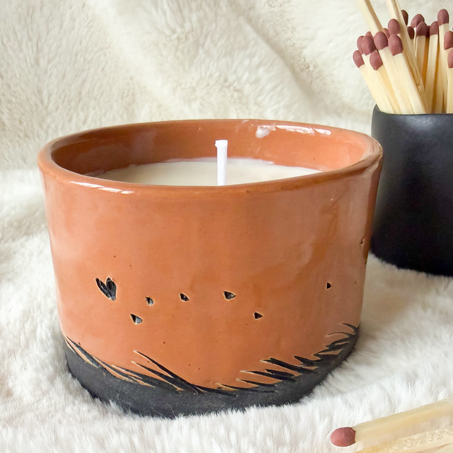 • Message secret gravé dans le pot. La bougie doit brûler plusieurs heure avant qu’il n’apparaisse 🔥