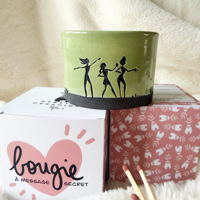 • Message secret gravé dans le pot. La bougie doit brûler plusieurs heure avant qu’il n’apparaisse 🔥